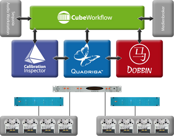 Calibration-Inspector will be utilized to secure and document the error-free playback condition of the Studer tape machines. Quadriga will be employed to digitize the audio tapes. The module automatically flags critical issues for aural supervision. Post processing is handled in Dobbin by virtual machines which perform flexible, metadata-driven workflows in order to optimize sound levels and automatically flag critical issues for aural supervision.