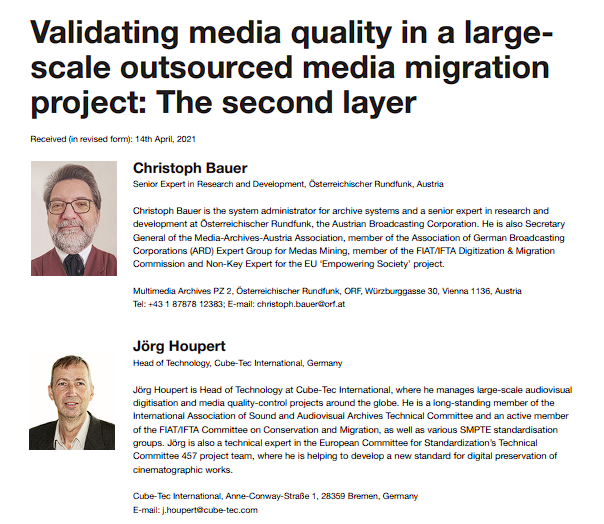 Dieses technische Dokument beschreibt die Qualitätskontrollprozesse (QC) für ein groß angelegtes Videokassetten-Migrationsprojekt des Österreichischen Rundfunks.