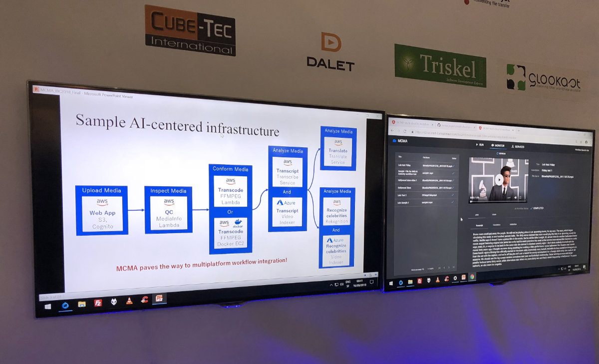 Unter der Leitung der EBU hat Cube-Tec dazu beigetragen, innerhalb des MCMA Teams einen Multi-Cloud AI Medien Workflow (AWS und Azure) zu entwickeln, der live auf der IBC gezeigt wurde. Es wurde die automatische Übertragung von Sprache-zu-Text, die automatische Sprachübersetzung und Gesichtserkennung demonstriert.