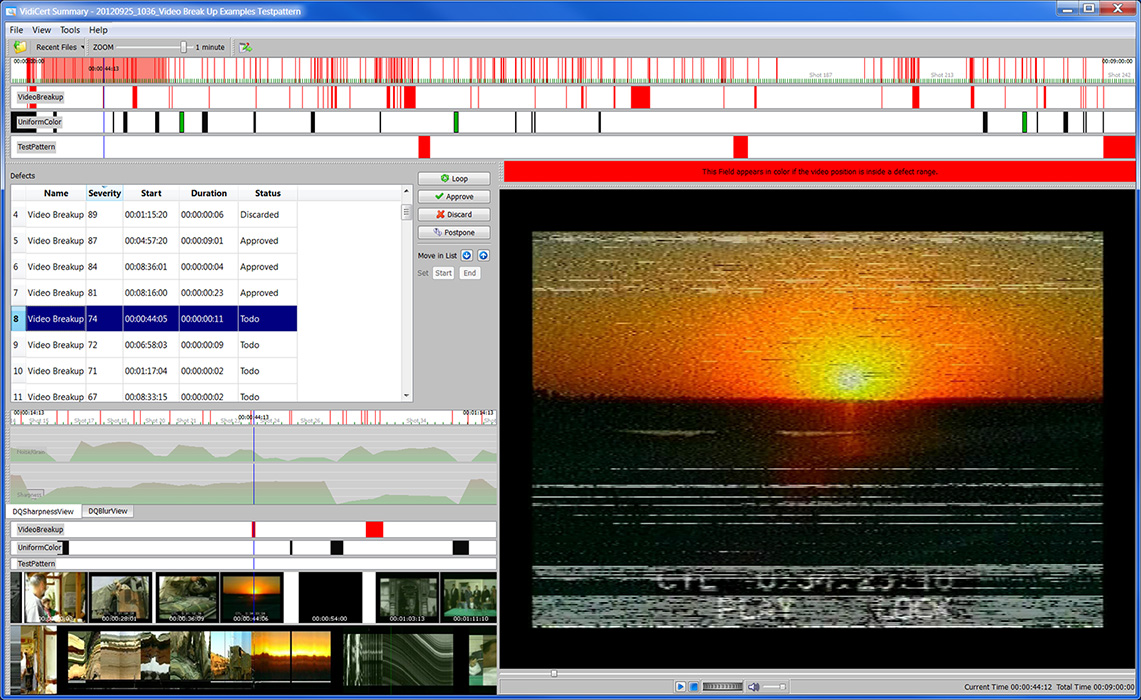 All file-based QC solutions on the market have their own strengths and weaknesses. More and more users now make use of multiple QC-engines, to be able to increase the degree of automation. QC-engines exhibit big differences in respect to quality assessment of video essence. Only few systems provide analysis functions for essence assessment, most of those only for error classes that could be directly derived from the video signal. Functionality for interactive verification of essence is often missing.