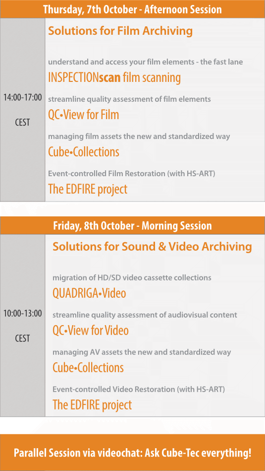 Auch in diesem Jahr gibt Cube-Tec auf seinem virtuellen Messe-Event Einblicke, wie sich die audiovisuellen Archivierungstechnologien weiterentwickelt haben. Bereits am 7. und 8. Oktober ist es soweit.