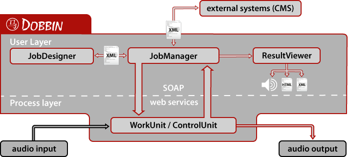 DOBBIN and the external JobClients are linked via WebServices. This way a flexible and platform independent means of communication is guaranteed.